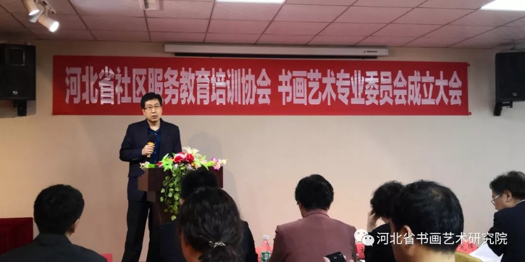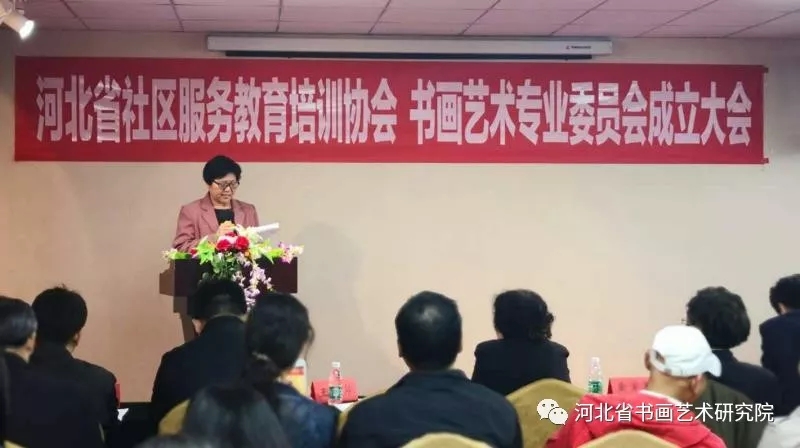河北省社区服务教育培训协会执行会长、党支部书记王玉芹在致辞中说到,书画艺术专业委员会的成立,是河北省社区服务教育培训协会工作在社区基层的再次延伸,为社区居民书法、绘画爱好者提供一个相互学习、相互交流、共同提高的新舞台,对繁荣河北书画艺术、满足群众日益增长的文化需求,起到积极推动作用。