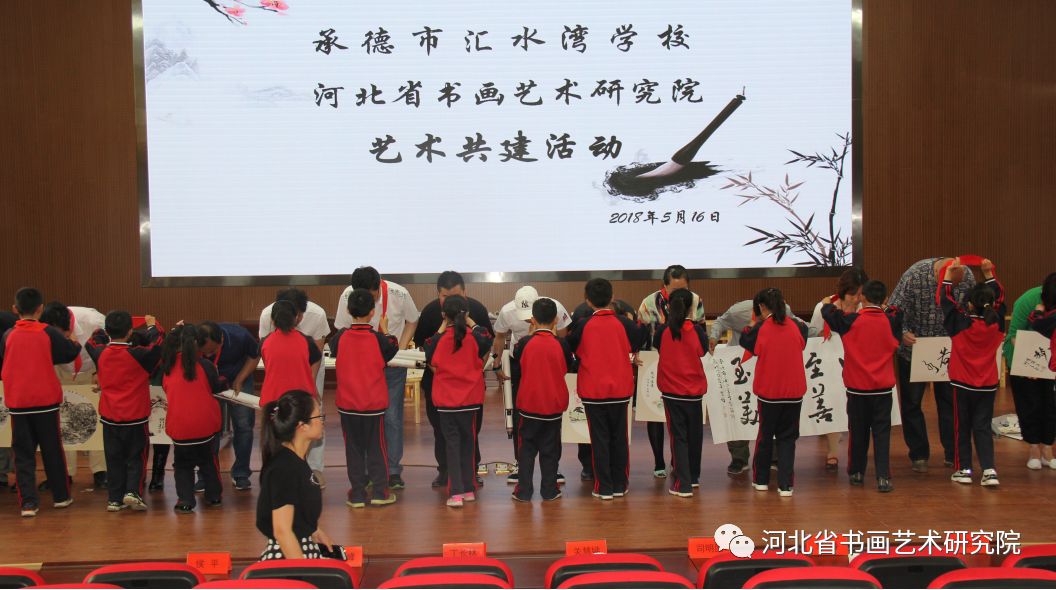 为了弘扬国粹、营造校园书香氛围、培养学生艺术特长,让学生们热爱书画、钟情艺术,2018年5月16日上午,汇水湾学校迎来了河北省书画艺术研究院和民盟承德美术院书画界的友人,他们将春天藏在笔墨里,书画在宣纸上,他们将生机存储于笔锋下,为汇水湾学校增添了一抹亮丽的色彩。