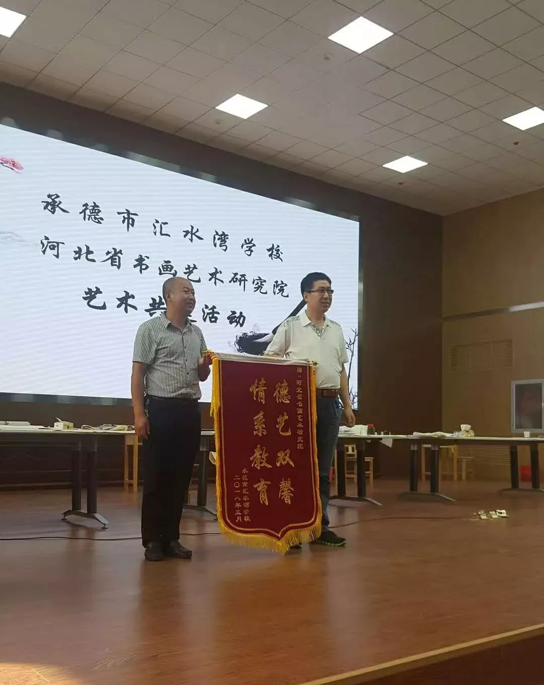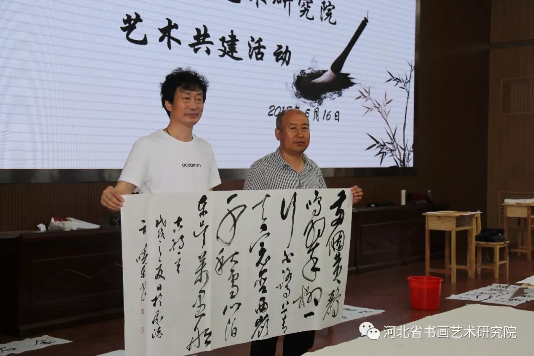 此次艺术共建活动主要分为领导致辞、签订艺术共建活动备忘录、捐赠百幅书画作品、汇水湾学校王磊校长为此次活动的参与方敬送锦旗、艺术家们为学生们现场书画、河北省书画艺术研究院赵岩峰院长为汇水湾学校的师生进行书法艺术讲座六个环节。