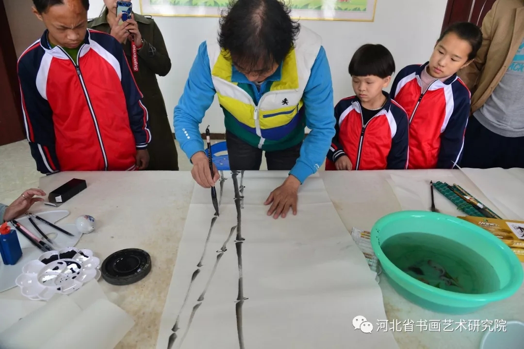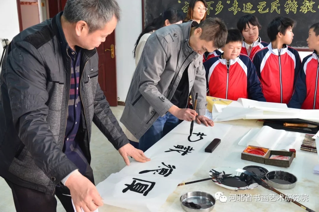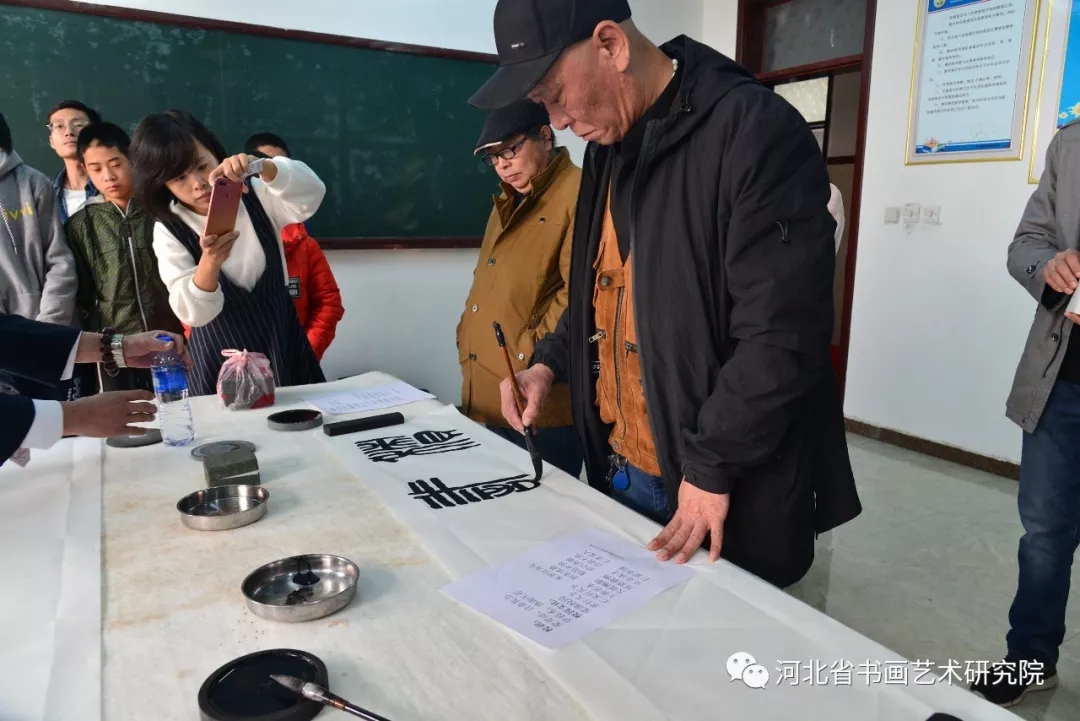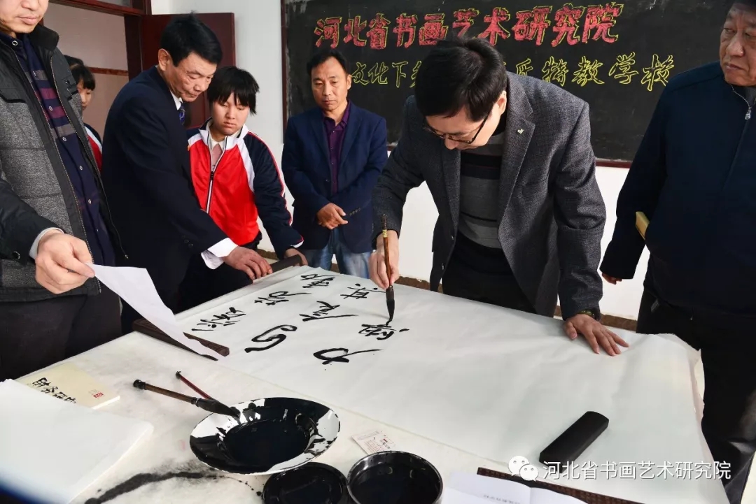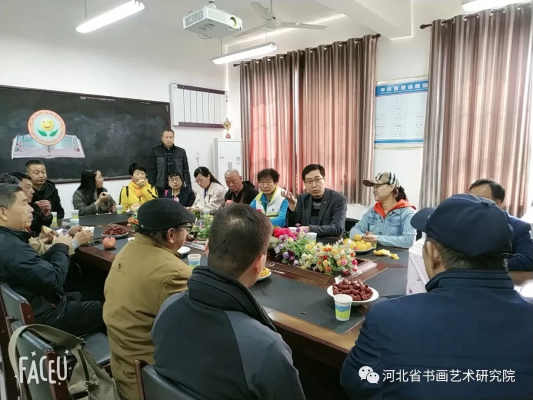 此次活动由河北省书画艺术研究院院长赵岩峰、党支部书记方晓东、理事杨宝江、王辉、石教民、赵晓兵带队,研究员寇引弟、郭建刚、邱国晋、魏铁刚、翁显梅、邢志鹏、贾浩、王丽霞、罗蒙、王锋、刘文杰等20位书画艺术家到场,受到元氏县特教学校师生的热烈欢迎。