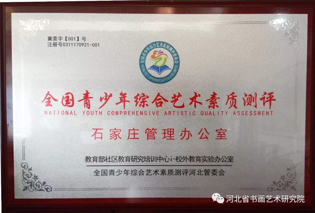 全国青少年综合艺术素质测评石家庄办公室设在河北省书画艺术研究院。自成立以来,本着学习和继承中华优秀传统文化,推广普及书画艺术为目的,通过科学、规范的培训与测评,推广先进的学习理念。