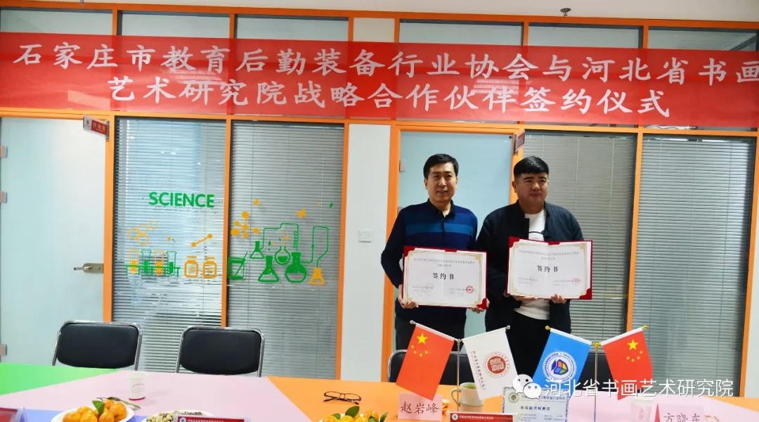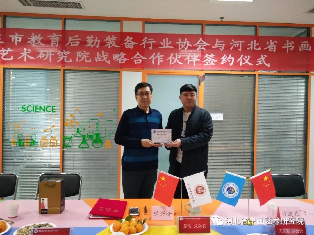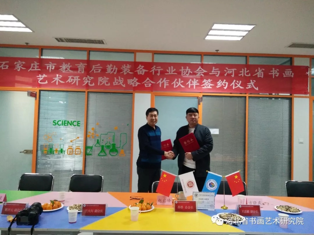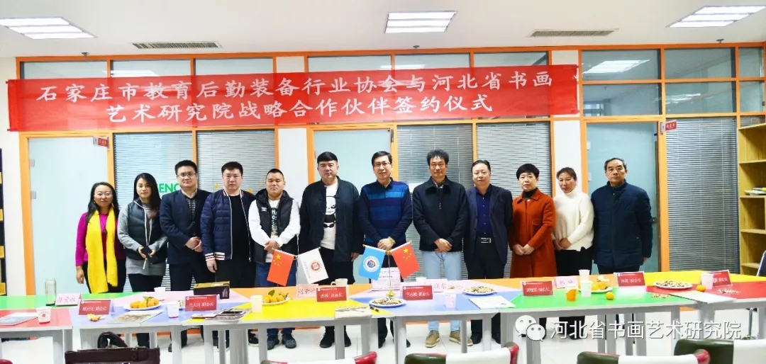 2018年11月29日下午,“石家庄市教育后勤装备行业协会与河北省书画艺术研究院战略合作伙伴签约仪式”在省书画艺术研究院正式启动。