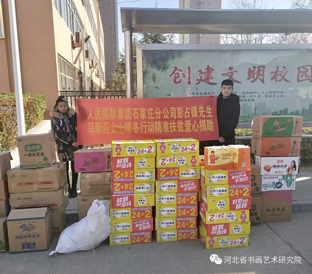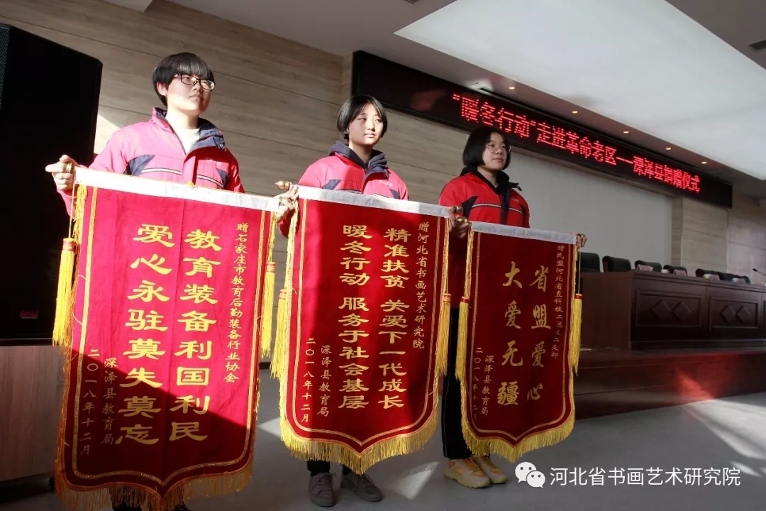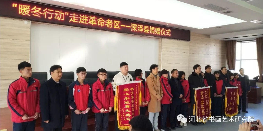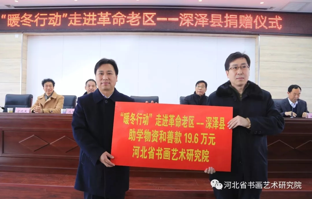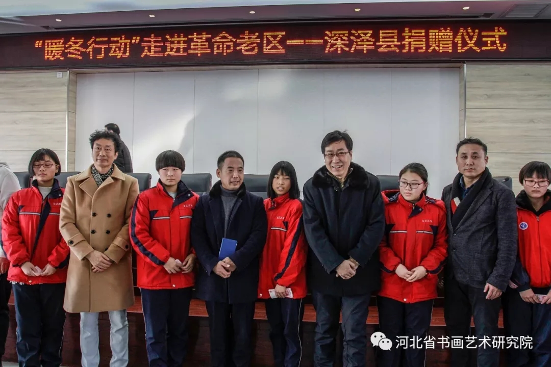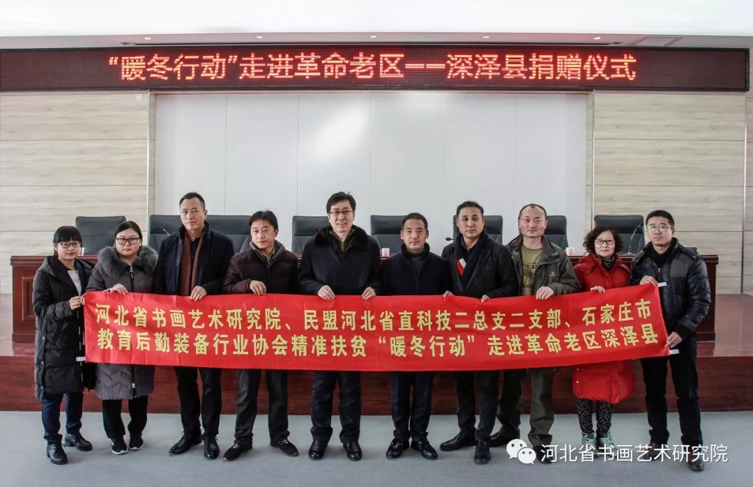 2018年12月23日,由河北省书画艺术研究院、民盟河北省直科技二总支二支部、石家庄市教育后勤装备行业协会主导发起的扶贫“暖冬行动”走进革命老区—深泽县爱心捐赠活动,得到众多爱心人士、企业家的响应和参与。