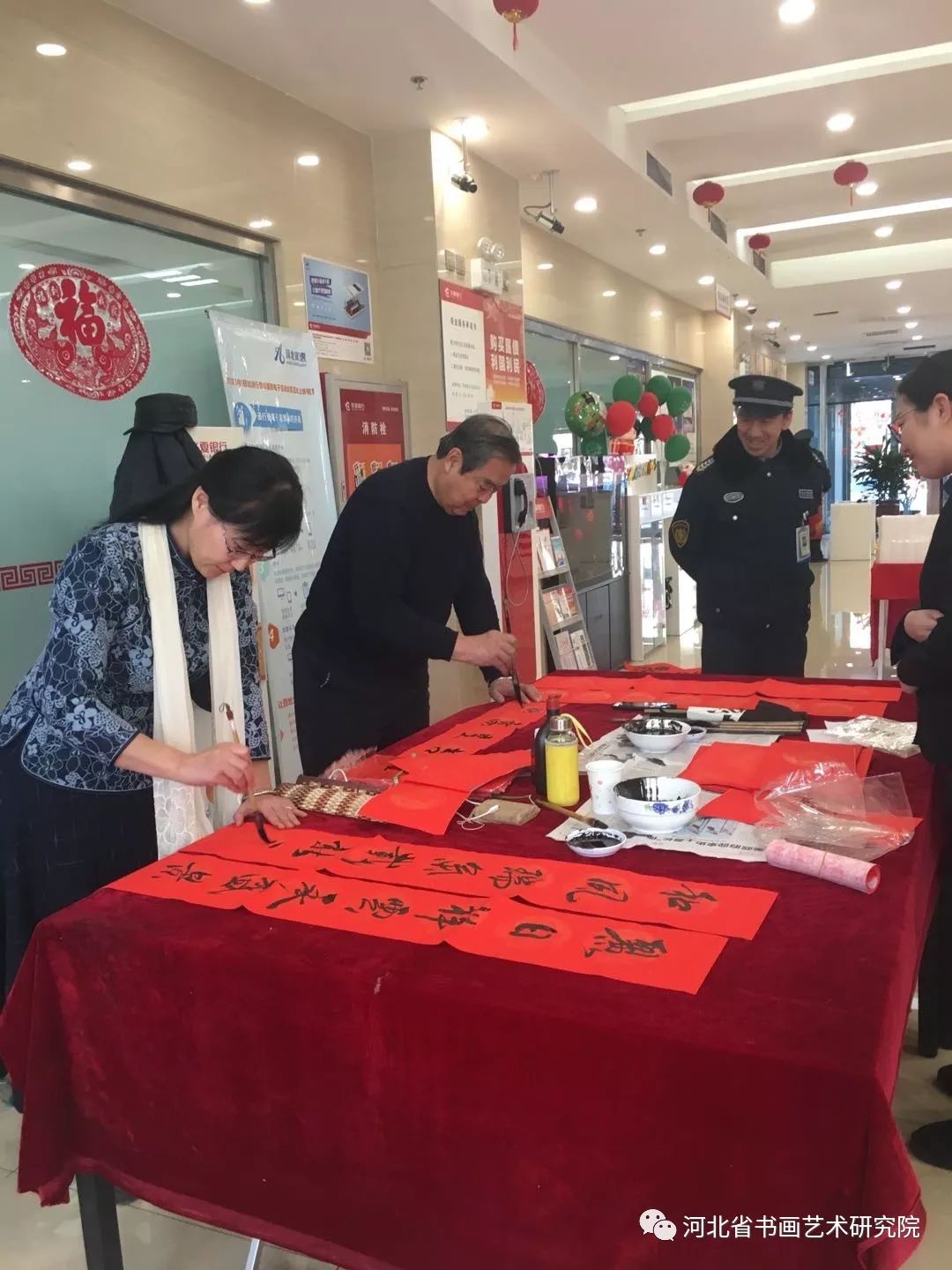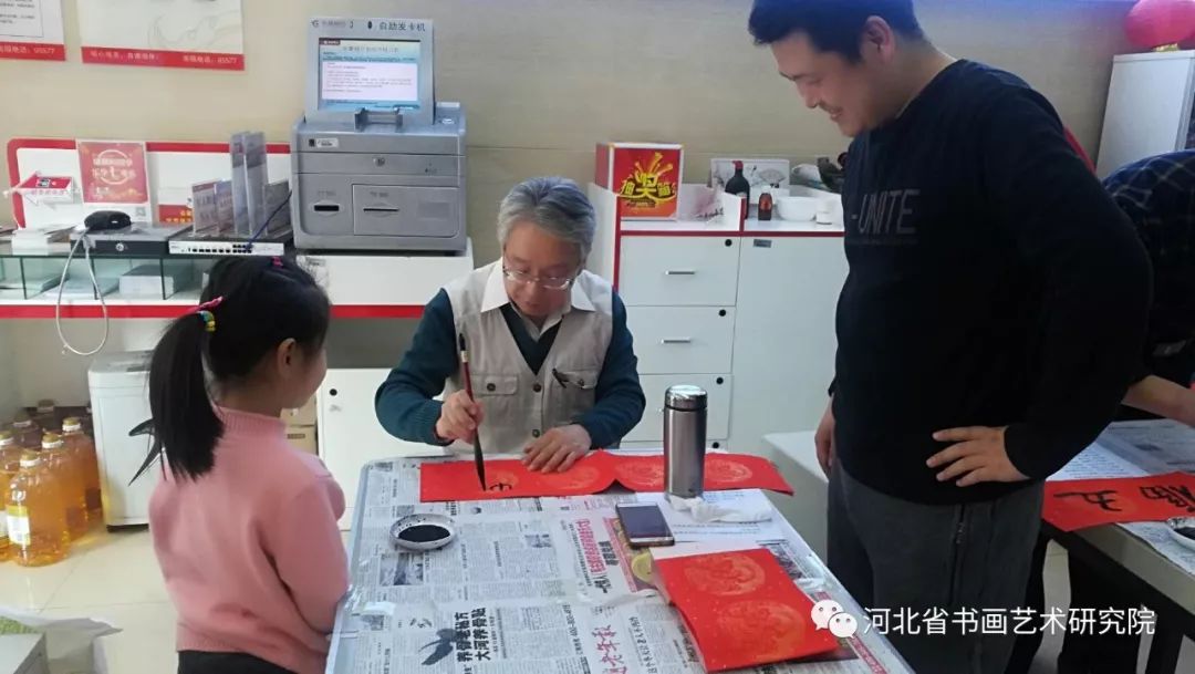 这是《燕赵老年报》携河北省书画艺术研究院为银行职工和客户举办的义写春联活动,传播中国传统文化已经形成了每年的惯例。