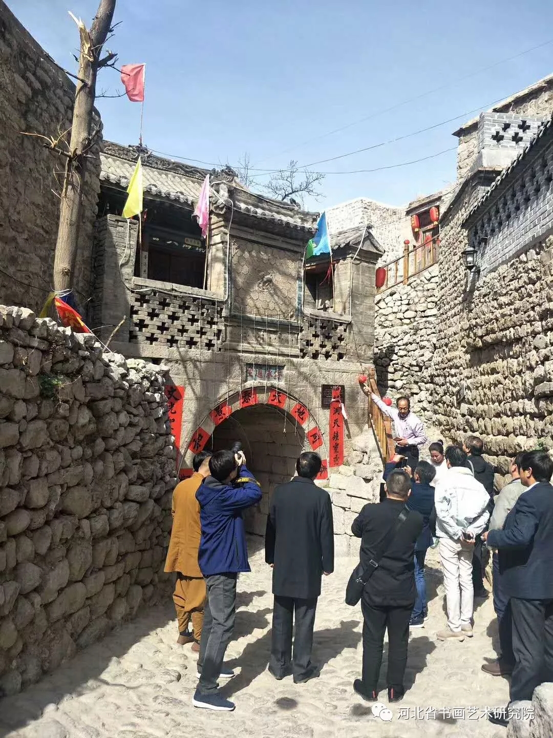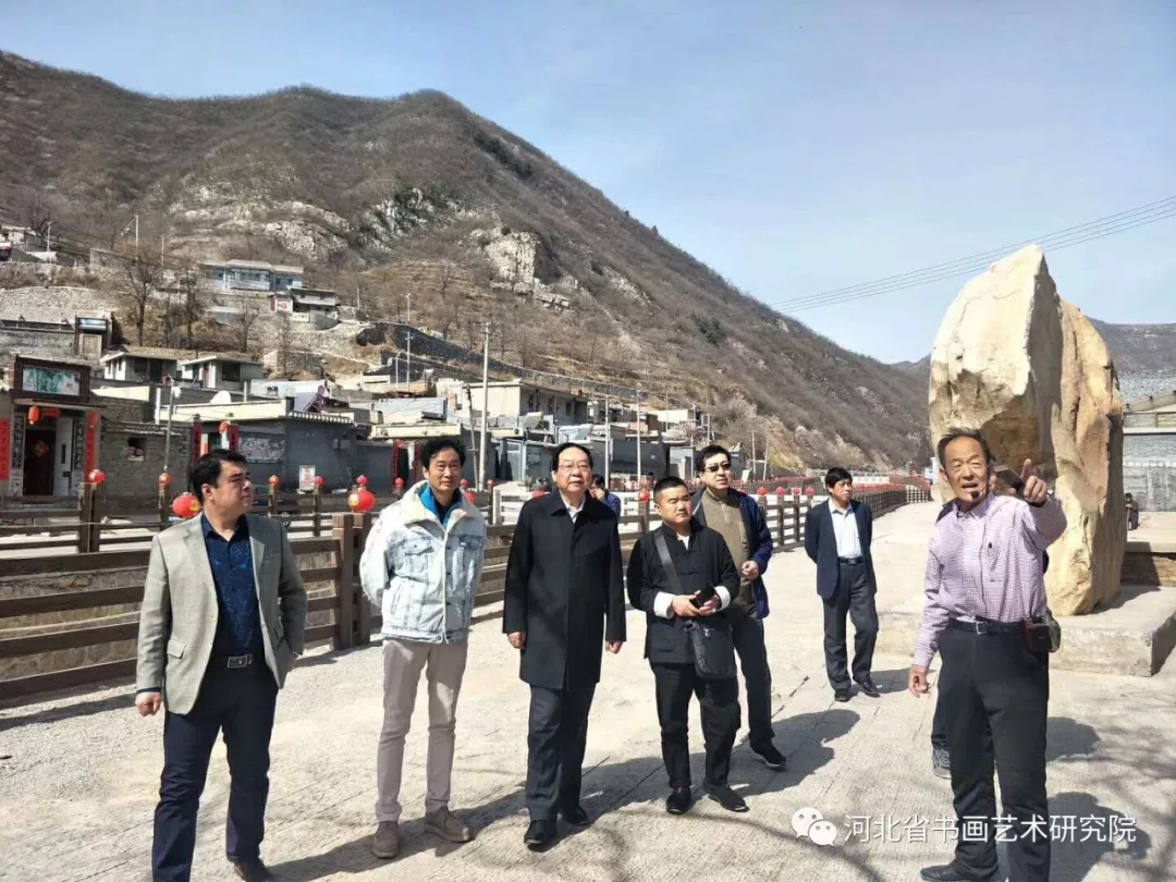 2019年3月26日上午,河北省书画艺术研究院长赵岩峰、书记方晓东、副院长夏春、理事梁山等领导成员应大梁江村支书梁端锁先生之邀,驱车前往位于晋冀交界处的千年古村落大梁江村考察调研,在村头受到梁瑞锁书记与井陉县诗词楹联协会王会长等人的热情欢迎。