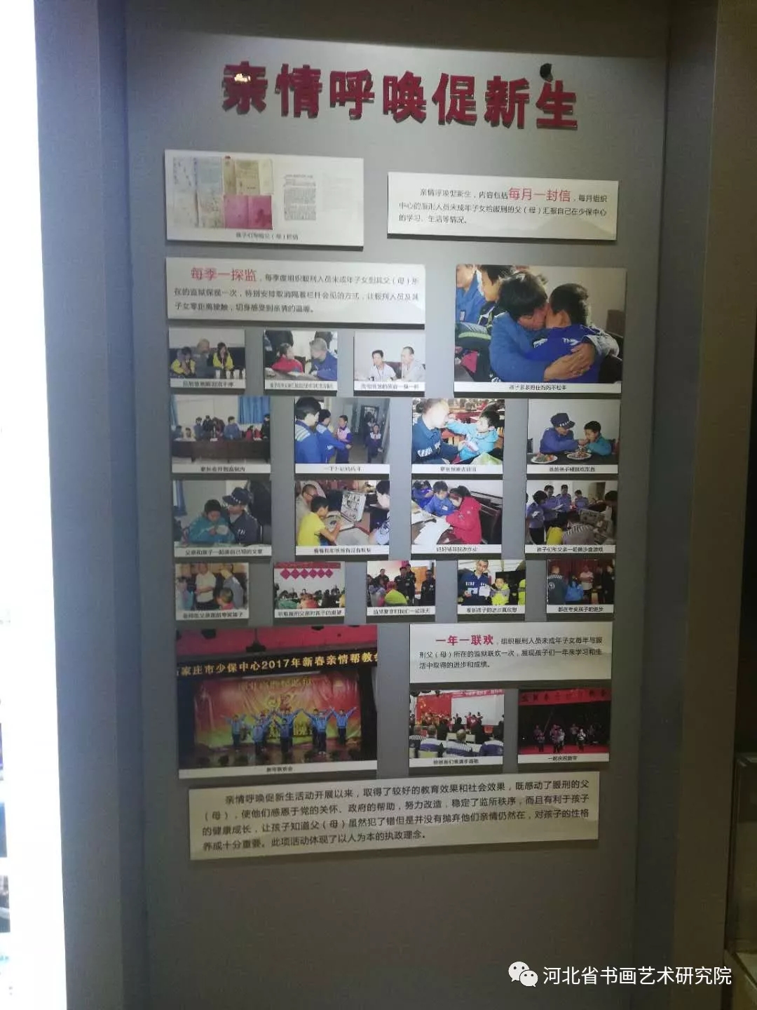 首先,由少保中心副主任杨程、杨平带领大家参观了少保中心的“服刑人员未成年子女保护教育石家庄模式”、“成长发展历程”展览,进一步了解到少保中心的责任和职能。