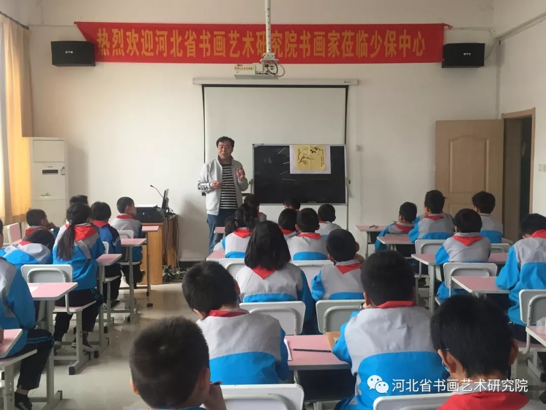 2019年4月19日上午,受石家庄市少年儿童保护教育中心领导的邀请,由河北省书画艺术研究院院长赵岩峰带领,理事赵晓兵、研究员魏铁刚、郑少东、宋计生、王锋、张宏志共同参加了此次活动。