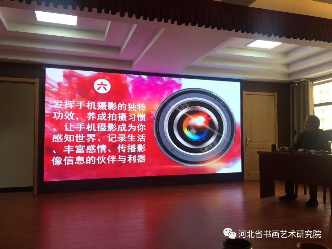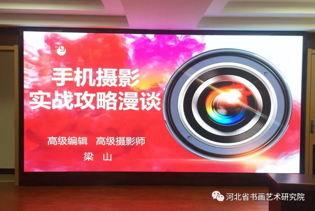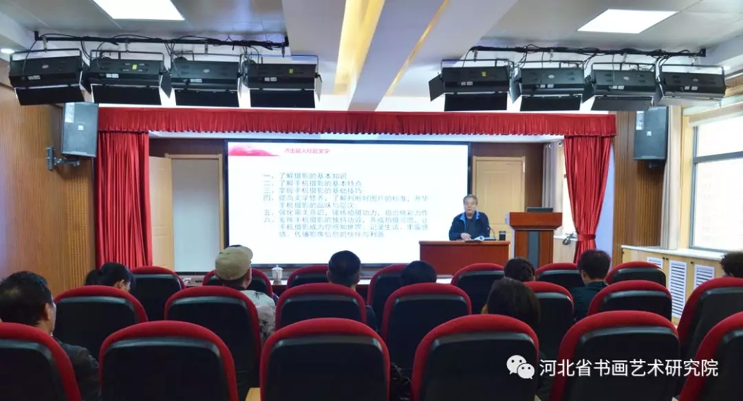 2019年4月18日上午,河北省书画艺术研究院摄影公益大讲堂在石家庄市桥西区职工服务中心5楼大会议厅开讲。由高级编辑、一级美术师、中国摄影家协会会员、河北省民俗摄影学会副会长、河北省书画艺术研究院理事梁山为大家作了题为“手机摄影实战攻略漫谈”的精彩讲座。