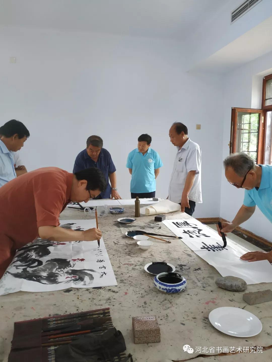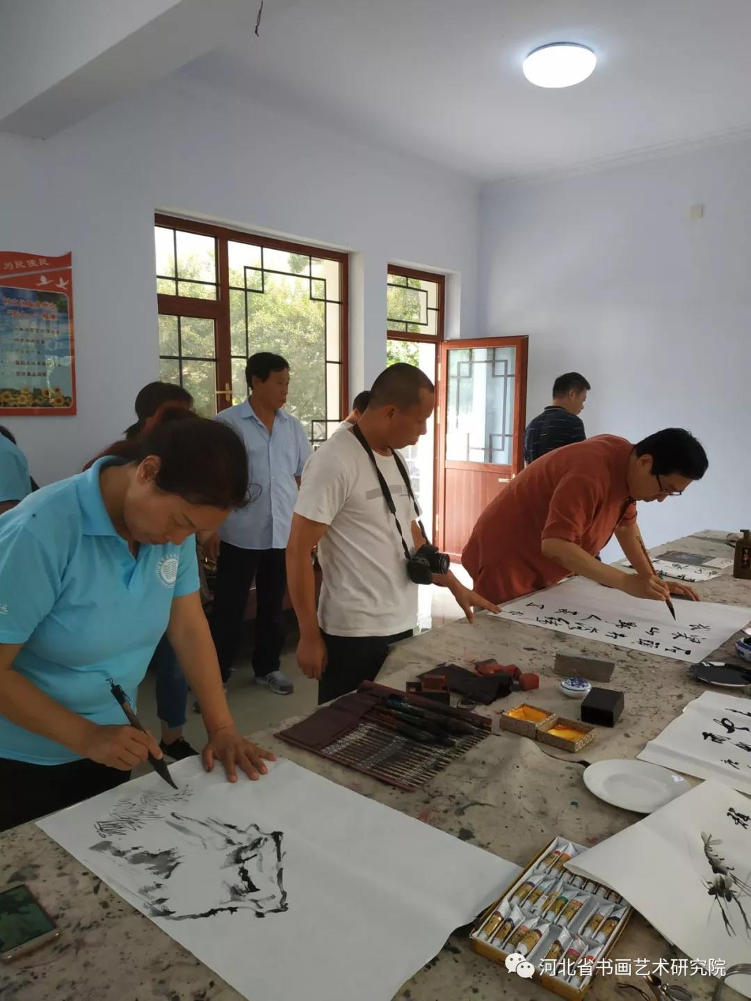 午饭后,书画家们挥毫泼墨,进行书画创作,书写描绘美丽的大梁江。