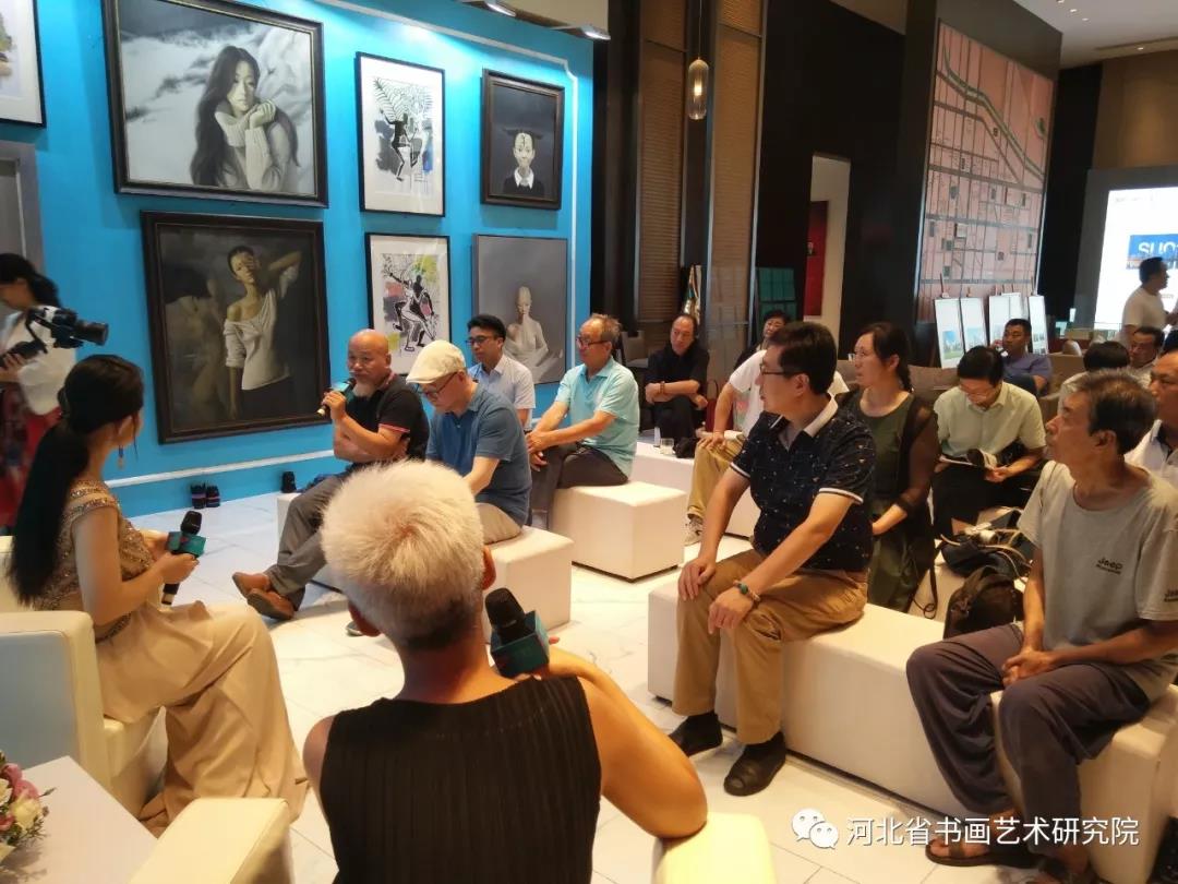 参加这次艺术展览活动的嘉宾有:中国人民大学艺术研究院研究员、中俄互评人文交流领域十大杰出人物刘晓教授;河北师范大学美术与设计学院教授、硕士生导师黄兴国;河北师大美术与设计学院教授、研究院艺术顾问崔贺亭;河北省书画艺术研究院院长、民盟中央美术院河北分院副秘书长赵岩峰;研究院副秘书长赵艳丽;研究院理事张锐明、高峰;研究院办公室主任陈素敏;藁城区文联副主席杜海军;藁城区美术家协会副主席张国民;藁城区书法家协会副主席刘少川;藁城区影视家协会主席聂建辉;研究院研究员、《人民日报·城市在线》主任记者赵献刚、研究员信文忠、马建国、胡永锋;《采风网》主任记者王浩等共同出席了这次活动。