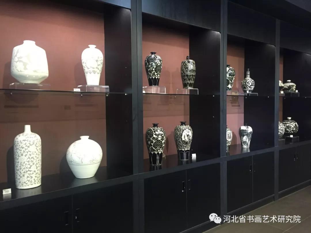 28日上午,赵院长一行在中国工艺美术大师王子锦老师的陪同下赴邯郸峰峰矿区彭城磁州窑艺术馆参观学习,磁州窑艺术馆馆长安际衡先生给大家介绍了艺术馆基本情况。磁州窑艺术馆是目前国内大的磁州窑主题艺术馆,是非物质文化遗产生产性保护示范基地,省级文化产业示范基地,省级科普基地。磁州窑以其辉煌的艺术、深厚的文化、悠久的历史著称于世,在中国陶瓷史上占有十分重要和独特的地位,开创了中国乃至世界陶瓷史上三项之:艺术成就高、 文化价值重、历史传承久。参观完艺术馆,大家深深地被磁州窑文化艺术所感染,选购了自己喜欢的瓷器,件件都是高雅的艺术品。