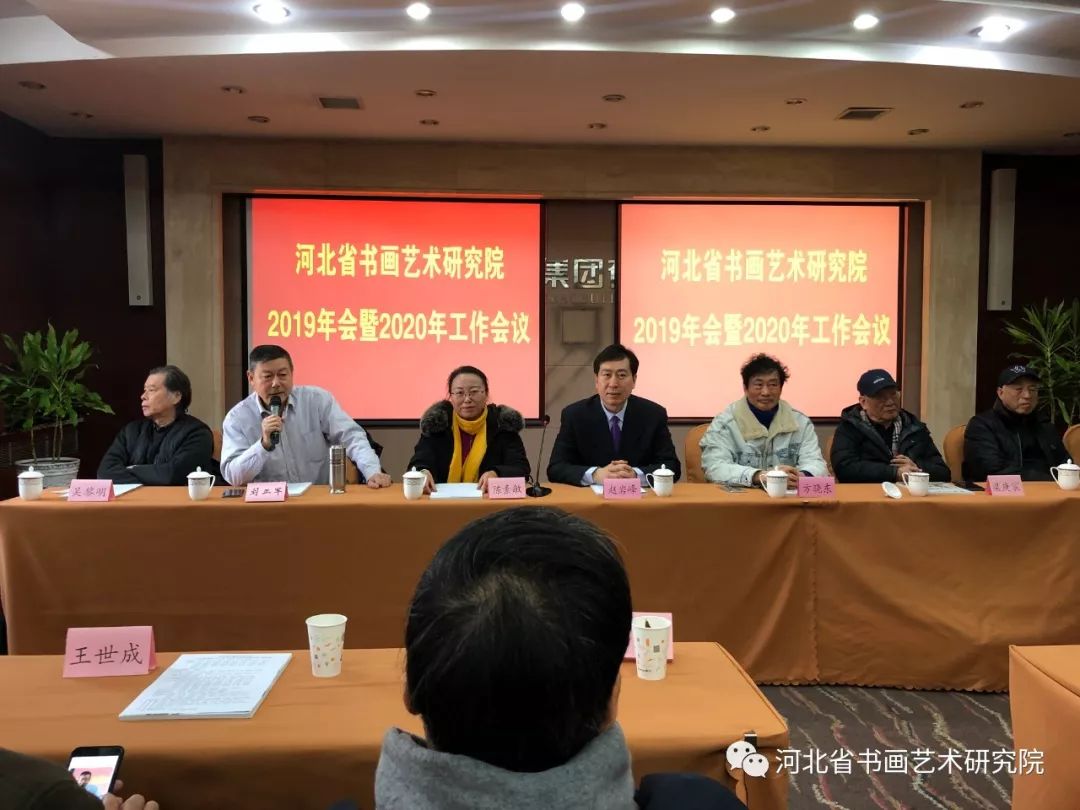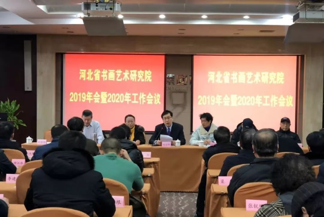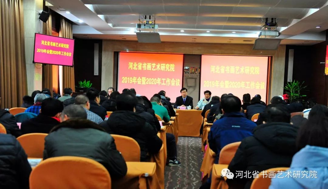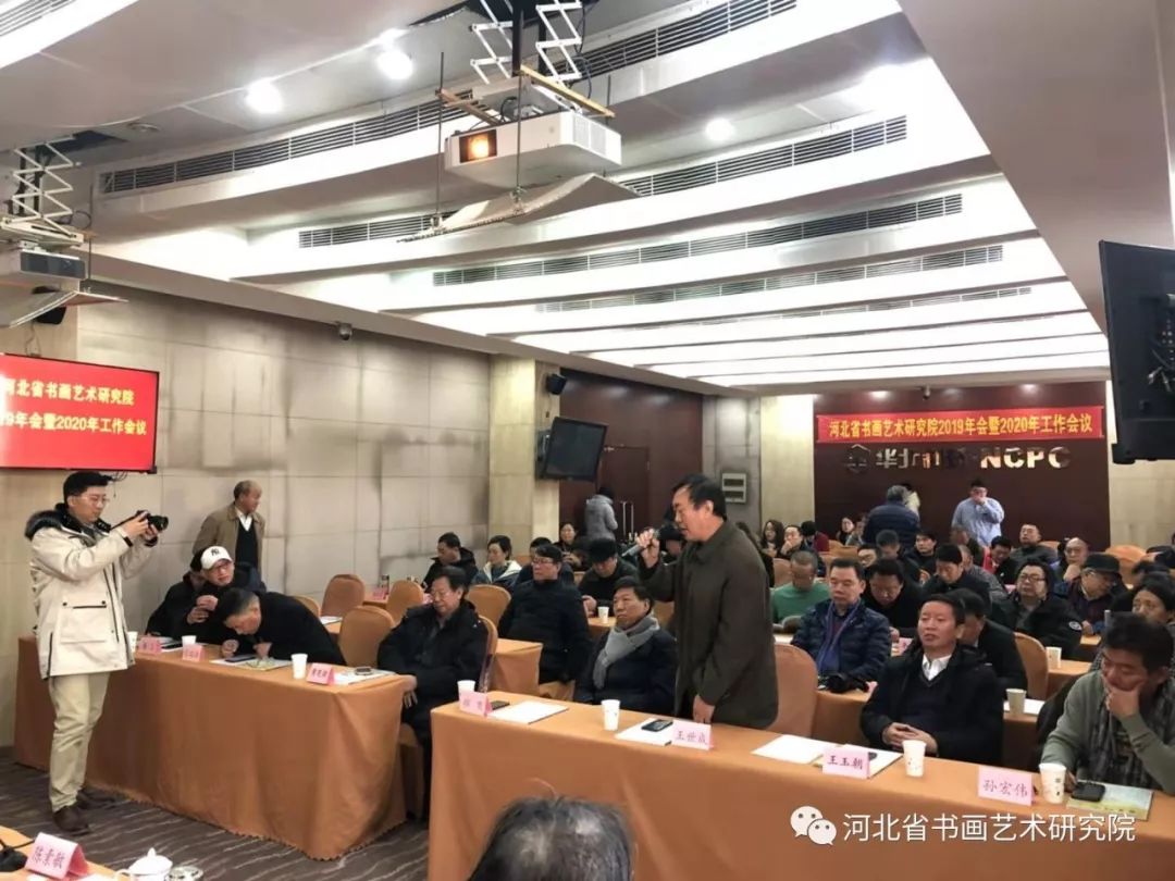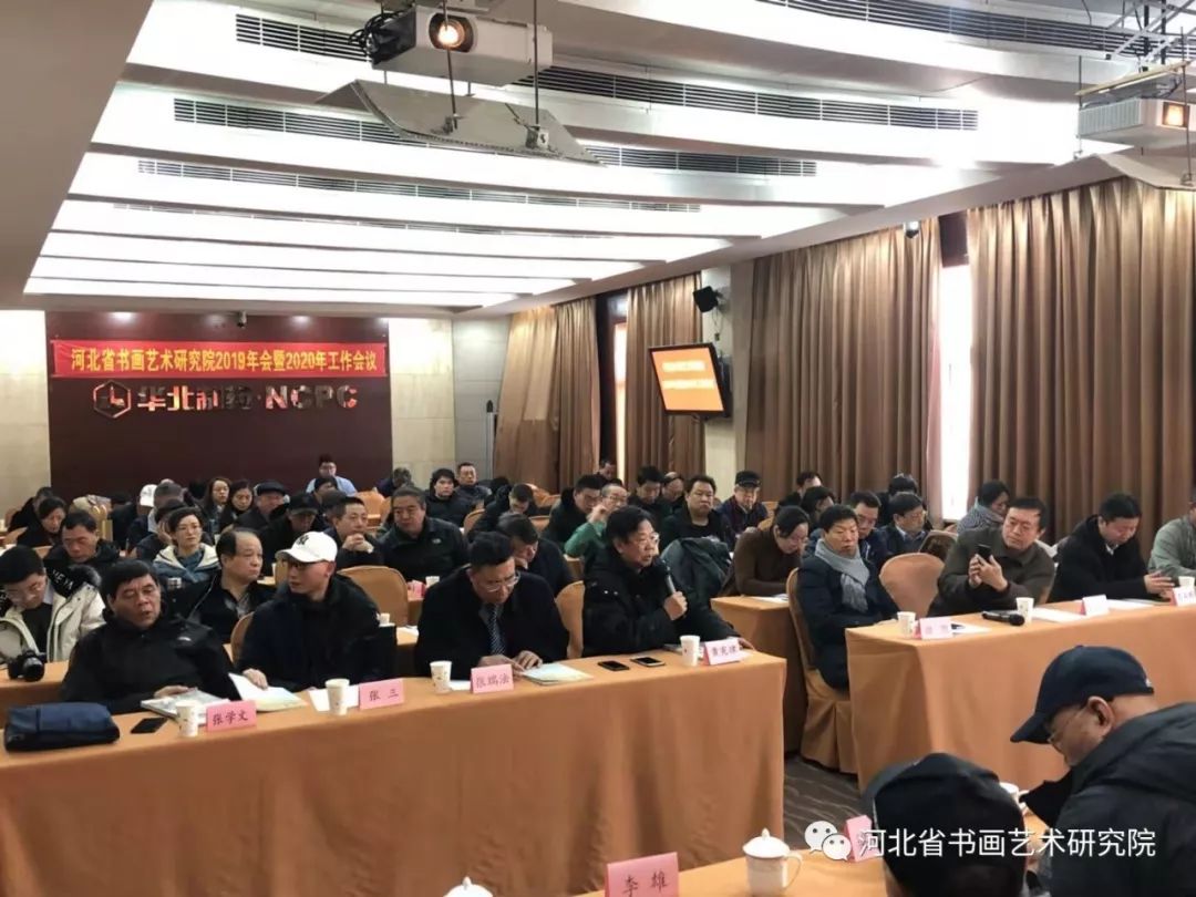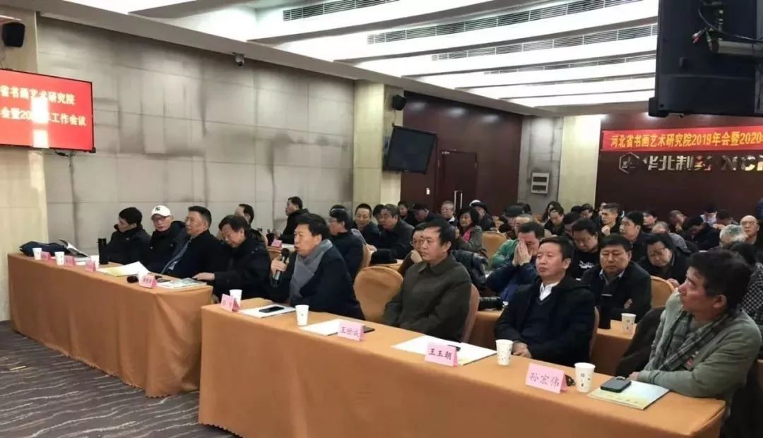 2019年12月29日上午,河北省书画艺术研究院2019年会暨2020年工作会议在华北制药集团总部会议室胜利召开!大会由办公室主任陈素敏主持,我院艺术顾问、院长、书记、副院长、副秘书长、常务理事、理事、研究员等60多名代表参加了这次会议。