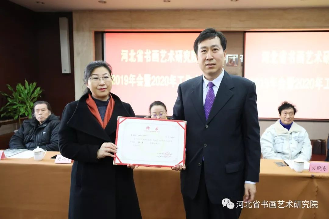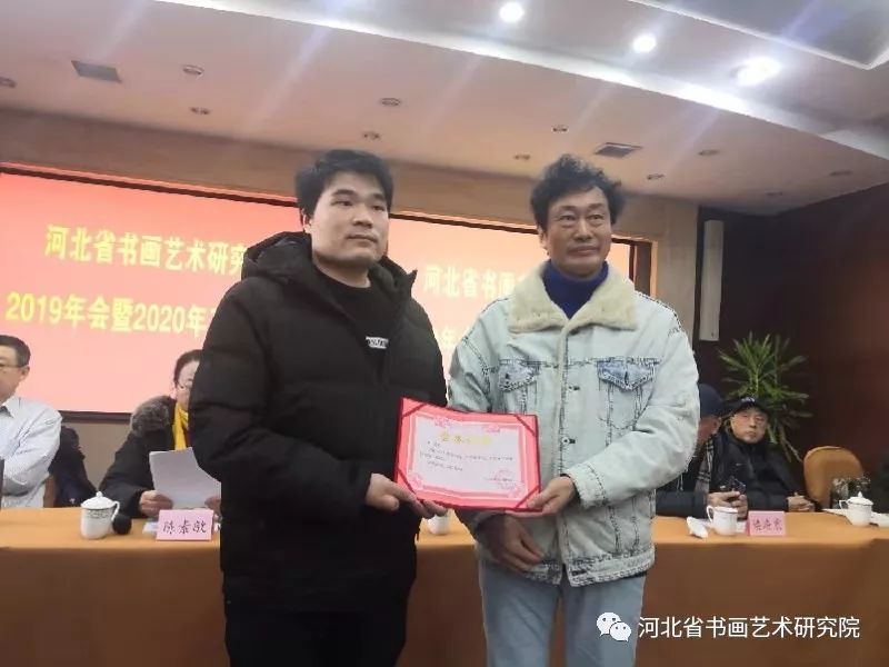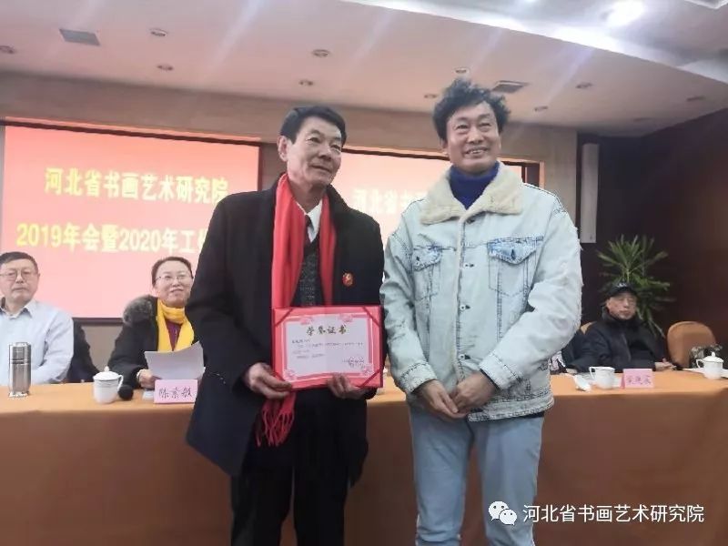 办公室陈主任公布了新聘用领导成员名单,张学文晋升为副秘书长;梁山、李志军晋升为常务理事;崔瑞芳、贾根元、吴兴伟、王建政、胡海霞为新增理事,赵院长为大家颁发了聘任证书。新增补的8名德艺双馨的书画艺术家为研究院领导班子注入了新鲜血液,必将带来新的发展动力!