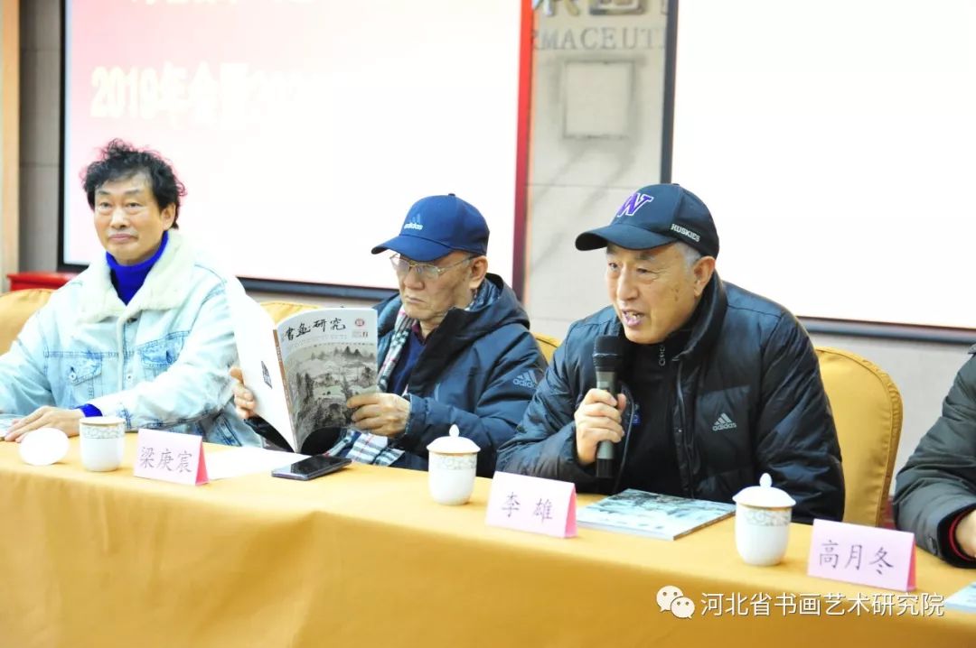 首先由赵岩峰院长做2019年度工作总结报告及2020年工作计划,赵院长从举办文化下乡公益活动、书画艺术交流展览活动、举办名家书画公益大讲堂活动、《河北书画研究》刊物建设情况、采风创作基地、艺术培训基地建设活动、教育部中国书画等级考试、综合艺术素质测评发展、爱心下乡“扶贫 暖冬行动”等方面的工作进行了详实的总结汇报,并对2020年的各项工作计划进行了规划展望,鼓励大家今后要积极参与书画院的各项活动,为我院发展壮大多做贡献。