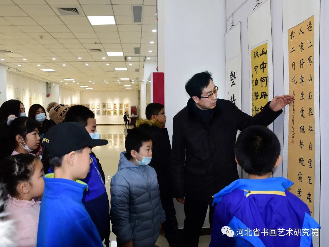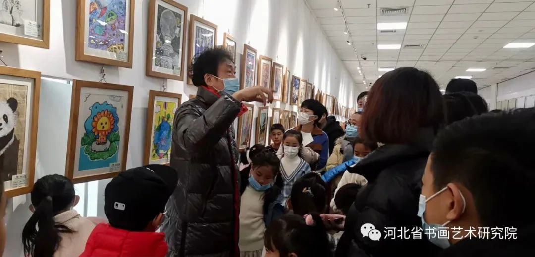 赵岩峰院长、书记方晓东老师等书画界名师在活动现场倾力为孩子们讲解作品,从一撇一捺到一章一印,从色彩冷暖变化到整体构图,详细讲解书画艺术其中的奥秘,引导孩子们探究书画艺术的文化和内涵。