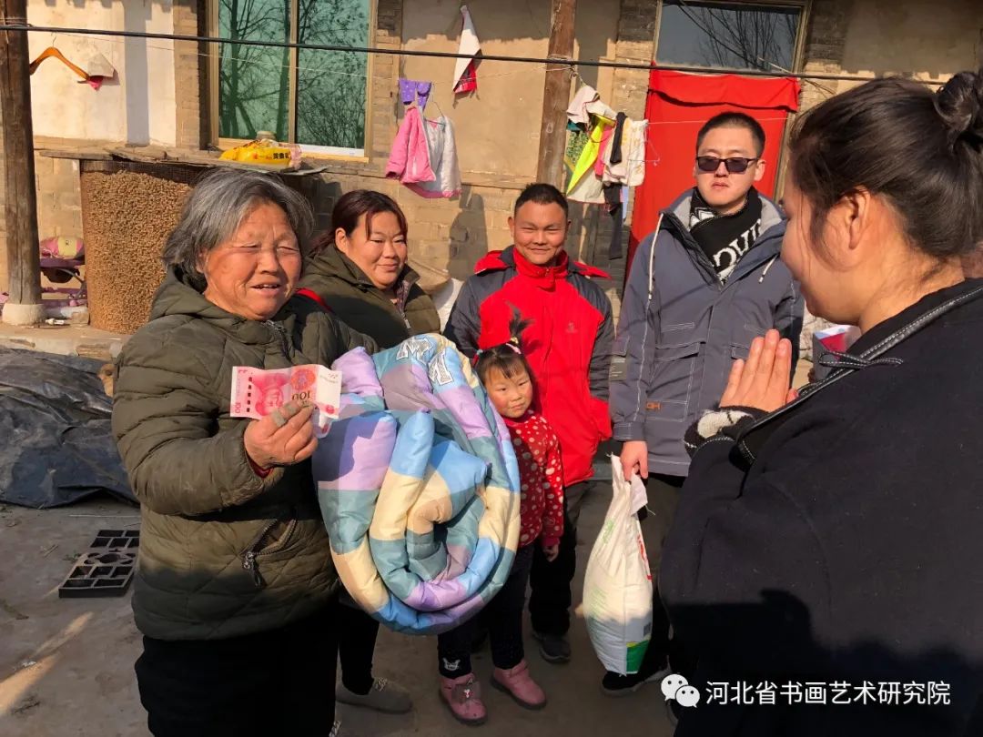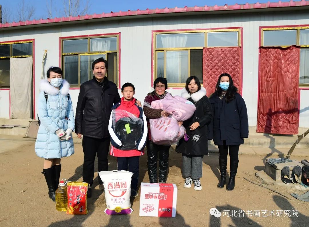捐赠仪式结束后,书画家和爱心人士在学校教师的带领下分组走进南燕川村、北燕川村、洞里村、新湖社村、北谭庄村5个村庄的11户困难学生家庭,给每户送去了大米、面粉、食用油、方便面、棉被和慰问金,鼓励孩子刻苦学习用知识改变命运改善生活。受访家庭都非常感动,感谢党的扶贫政策、感谢社会爱心人士的关心和帮助。
