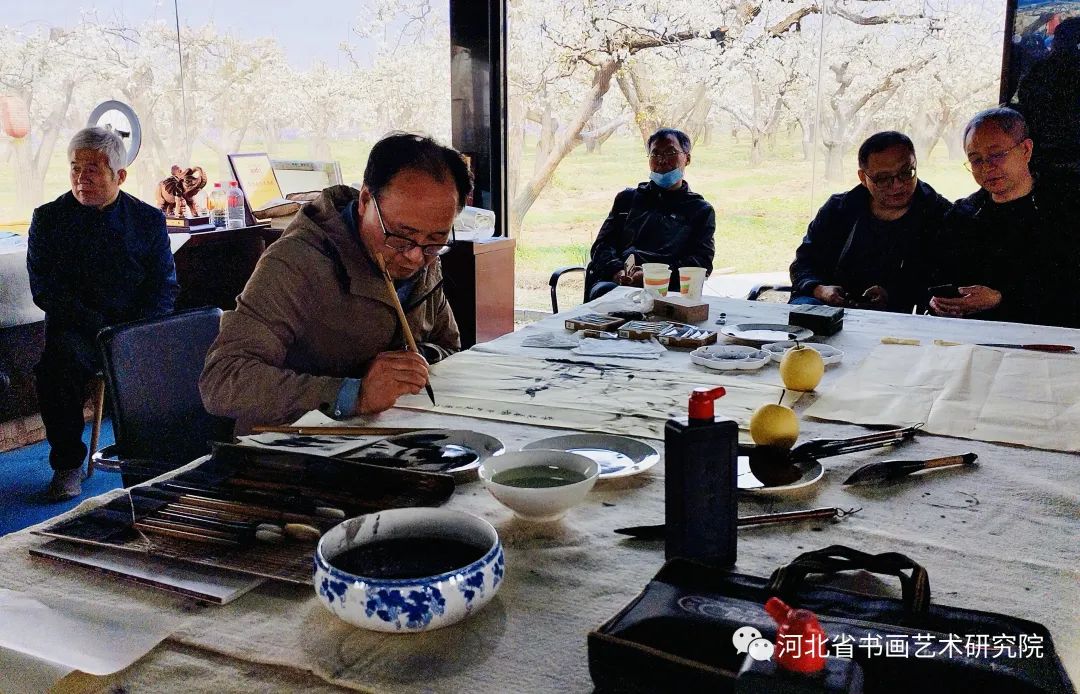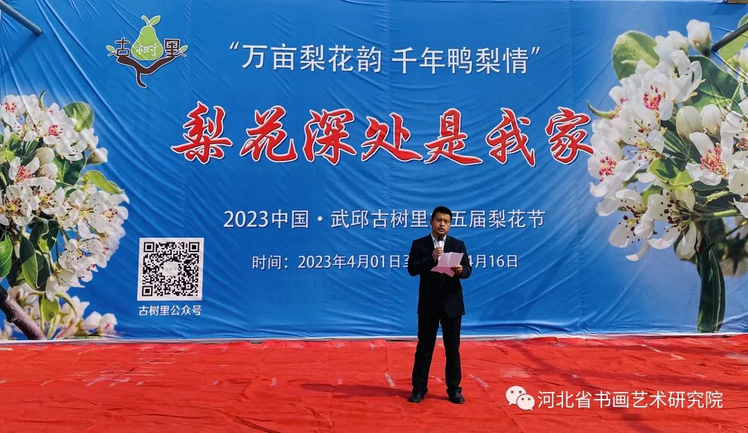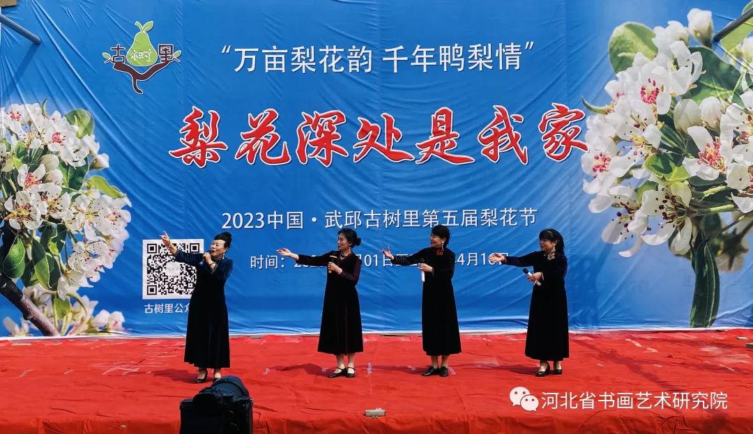 笔会结束后河北省书画艺术研究院书画家们一同观赏了古树里梨花节开幕式的精彩节目并游览了古树里梨园美景。
