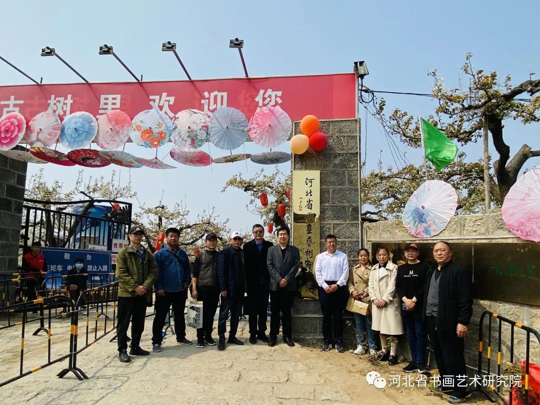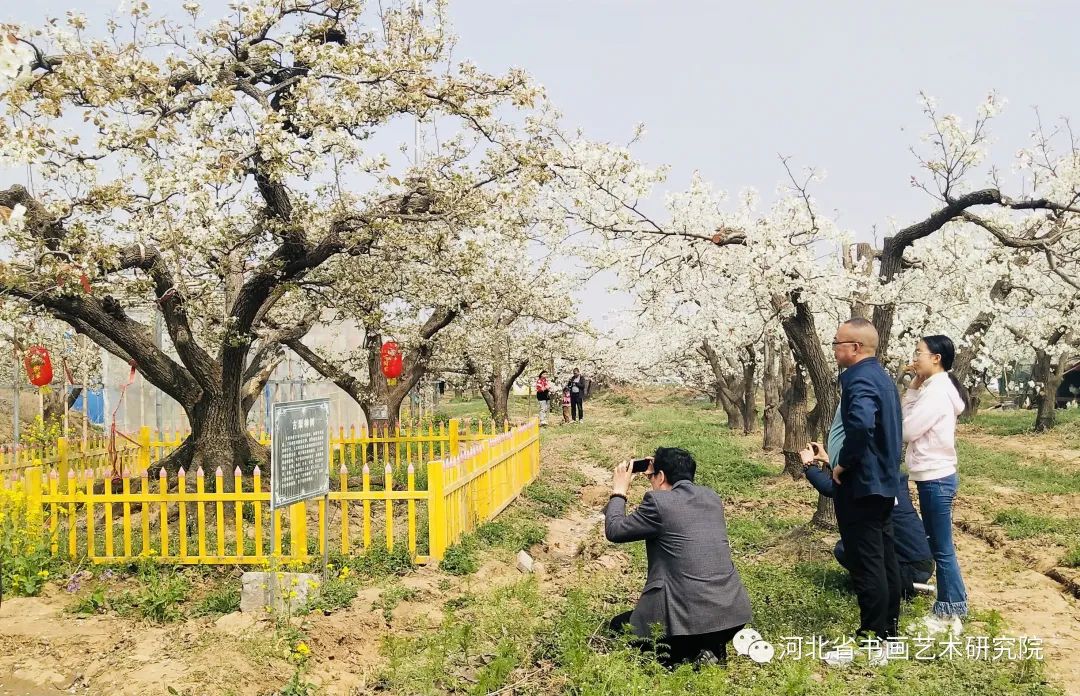 梨园美景也吸引了河北省书画艺术研究院书画家们的到来。为更好的促进少年儿童学习书画知识,提升书画艺术修养,体验古树里景区独具特色的梨园文化,引导少年儿童树立文化自信,2023年4月1日,河北省书画艺术研究院古树里游学基地在古树里梨园成立。
