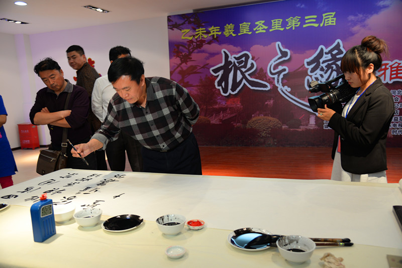 为了弘扬社会主义核心价值观,共筑中国梦,传播优秀传统民族文化,增加民族的向心力、凝聚力,促进河北新乐市文化艺术繁荣发展,打造伏羲文化品牌,扩大对外文化交流,在农历三月十八伏羲诞辰来临之际,5月5日(农历三月十七)新乐市文联携河北省书画艺术研究院在伏羲台举办了乙未年羲皇圣里第三届根之缘雅集。
