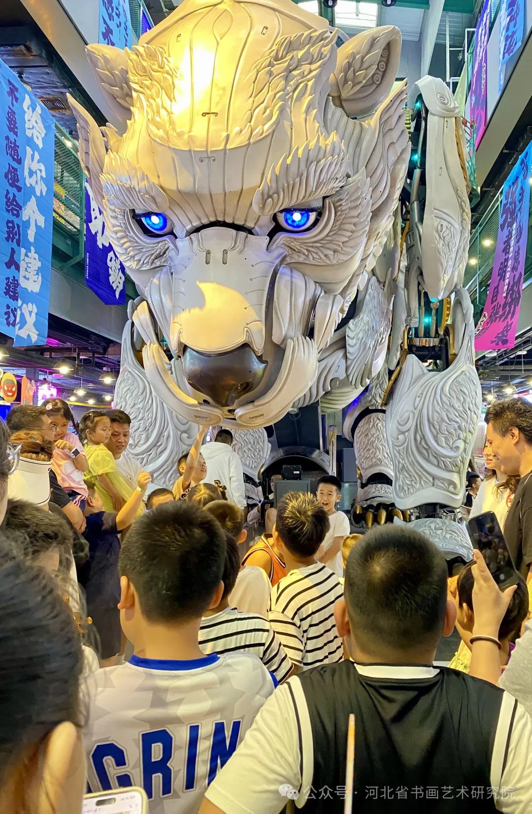 在大连市打卡最火爆的熊洞街与大名鼎鼎的网红萌神机械巨熊“熊北北”来一场亲密接触。熊北北是一只机械巨熊,蒸汽朋克又有点萌态可爱的形象,给人留下深刻印象,圈粉无数!原来这个“巨熊北北”是艺术家肖迪(肖将军)首个为室内街区环境打造的电控轨道式行进机械巨兽,身高7.14 米、重25吨,身形巨大,行动轨迹覆盖整个街区,最高可到街区顶层3楼;眼睛更是采用可控可调节高清LED屏幕,灵动的双眼点亮了视乎打开异空间的入口,现场科技感和未来感爆棚。