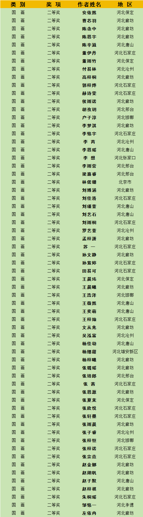 (获奖名单按姓名拼音首字母排序)