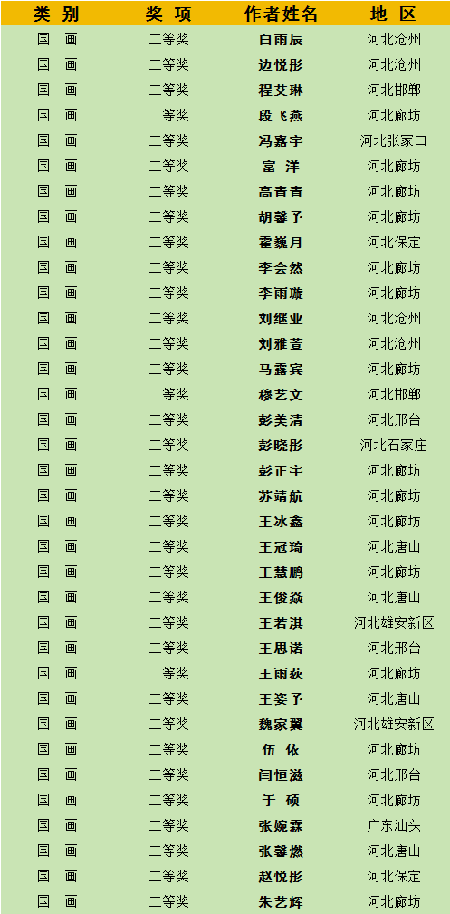 (获奖名单按姓名拼音首字母排序)