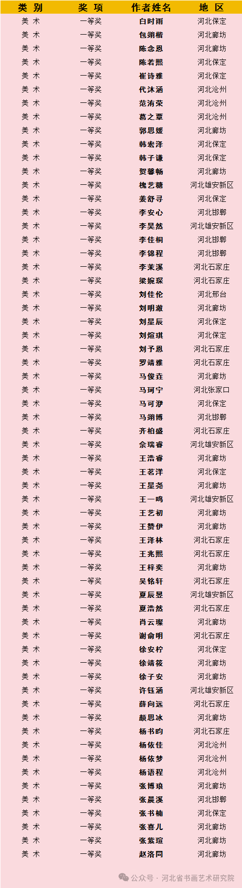 自10月8日征稿活动开启以来,活动受到全省乃至全国各地热爱书画艺术的少年儿童的积极参与。截止12月12日征稿结束,“翰墨童心 放飞梦想”第四届少儿书画展组委会共收到来自全国各地的投稿件数达60000余幅,经过组委会工作人员长达两个多月紧张忙碌的整理、评选、登记等工作,今日起陆续公布评选出的美术类获奖作品,现向社会公布美术类作品幼儿组获奖作者名单。