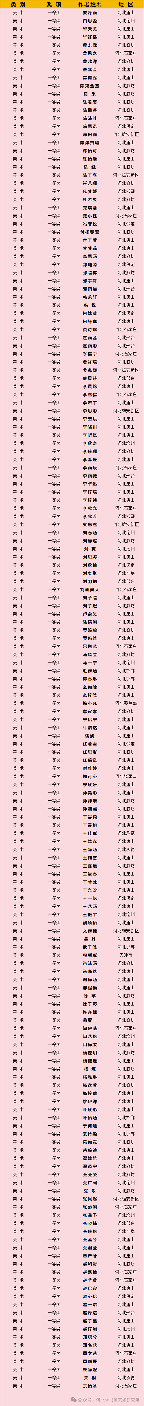 自10月8日征稿活动开启以来,活动受到全省乃至全国各地热爱书画艺术的少年儿童的积极参与。截止12月12日征稿结束,“翰墨童心 放飞梦想”第四届少儿书画展组委会共收到来自全国各地的投稿件数达60000余幅,经过组委会工作人员长达两个多月紧张忙碌的整理、评选、登记等工作,现向社会公布美术类作品儿童B组一、二等奖获奖作者名单。