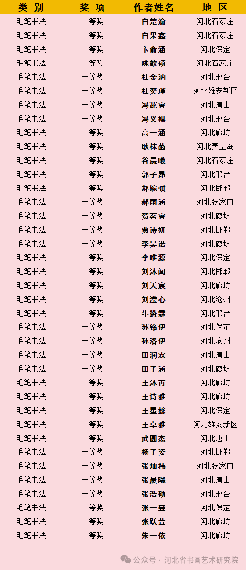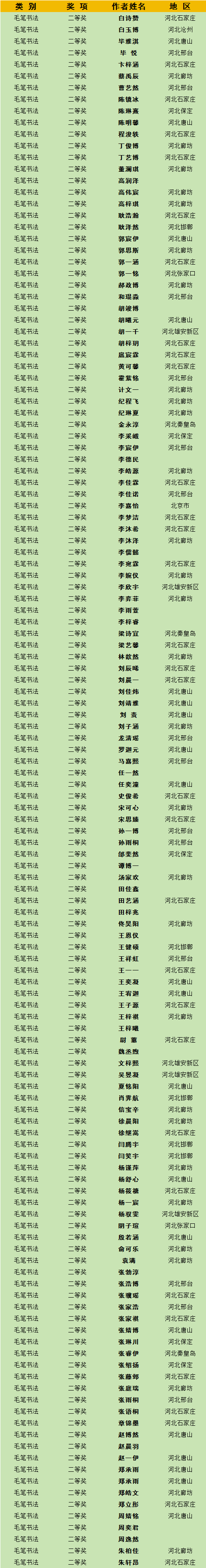 自10月8日征稿活动开启以来,活动受到全省乃至全国各地热爱书画艺术的少年儿童的积极参与。截止12月12日征稿结束,“翰墨童心 放飞梦想”第四届少儿书画展组委会共收到来自全国各地的投稿件数达60000余幅,经过组委会工作人员长达两个多月紧张忙碌的整理、评选、登记等工作,今日起陆续公布评选出的毛笔书法类获奖作品,现向社会公布毛笔书法类作品儿童A组(7-9岁)获奖作者名单。