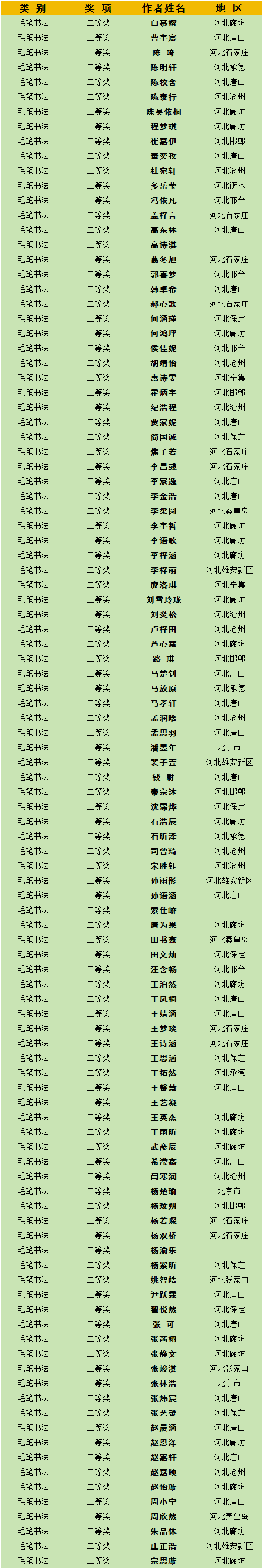 自10月8日征稿活动开启以来,活动受到全省乃至全国各地热爱书画艺术的少年儿童的积极参与。截止12月12日征稿结束,“翰墨童心 放飞梦想”第四届少儿书画展组委会共收到来自全国各地的投稿件数达60000余幅,经过组委会工作人员长达两个多月紧张忙碌的整理、评选、登记等工作,今日起陆续公布评选出的毛笔书法类获奖作品,现向社会公布毛笔书法类作品少年A组(13-15岁)获奖作者名单。