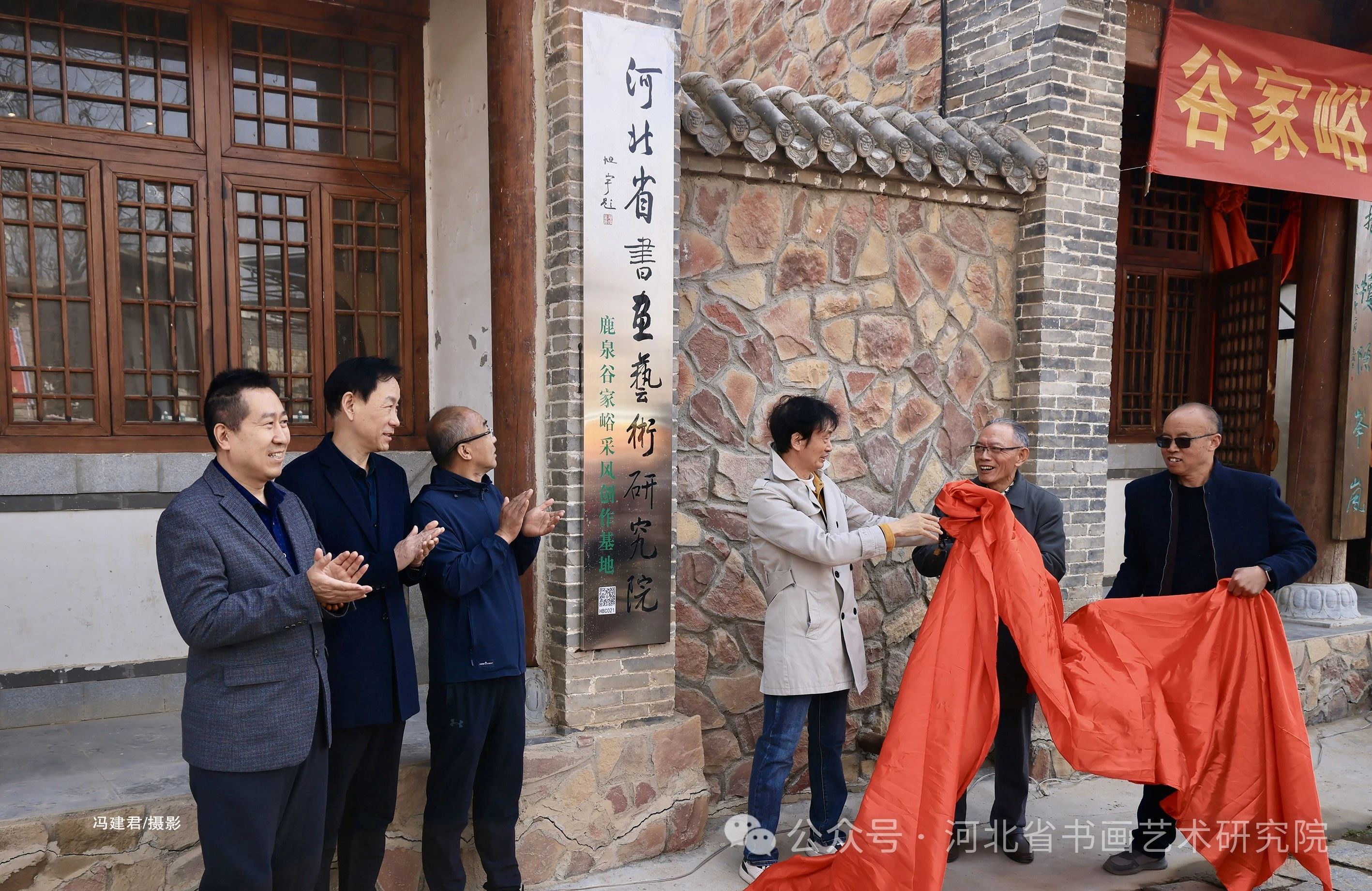 河北省书画艺术研究院书记方晓东、院长赵岩峰,石家庄市委宣传部原副部长薛建廷、石家庄市委宣传部赵军安处长,鹿泉区白鹿泉乡樊二斌乡长、谷家峪村支部书记谷彦文共同为基地揭牌。
