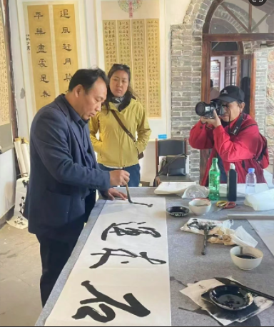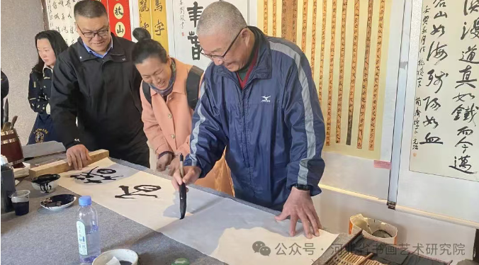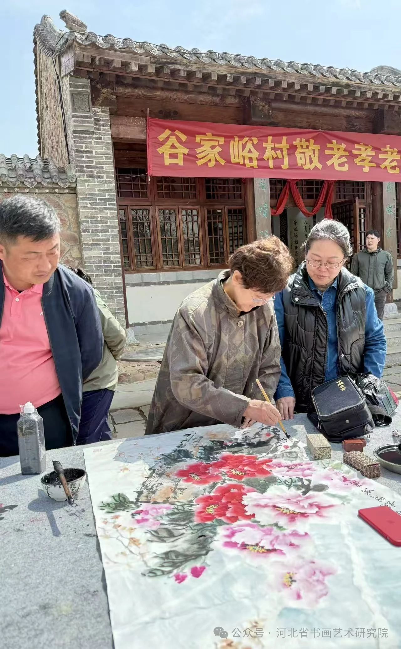 仪式结束后,笔会现场,河北省书画艺术研究院的艺术家们纷纷挥毫泼墨进行笔会创作,那一幅幅精美的书画作品每一笔、每一墨都描绘出了谷家峪美丽的乡土风情,这些作品不仅具有很高的艺术价值,更为当地群众带来了美的享受。 活动中艺术家们还与村民们进行了深入的交流,乡亲们也展现出了对书画艺术的浓厚兴趣与热爱。表示这次活动让他们感受到了艺术的魅力,激发了他们对艺术的兴趣和热爱。