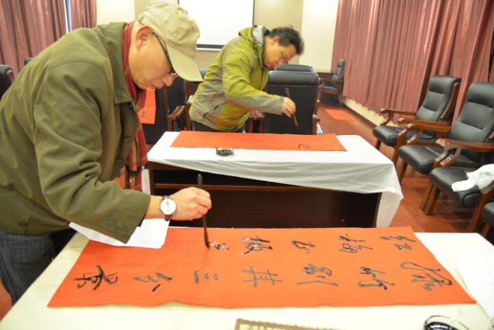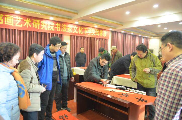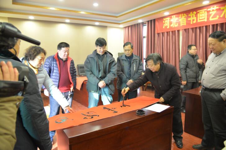 为贯彻落实习近平总书记文艺工作座谈会重要讲话精神和《中共中央关于繁荣发展社会主义文艺的意见》,持续开展“深入生活,扎根人民”主题实践活动,推动形成常态化机制。2016年元月9日在新春佳节来临之际,在赵县县委县政府正确领导和倡导下,在赵县书协大力支持下,河北省书画艺术研究院组织书法家开展向赵县人民送春联纳福下乡活动,以迎接猴年新春的到来,为全县人民活跃增添浓厚的节日氛围,以提高公共文化服务建设的质量水平。