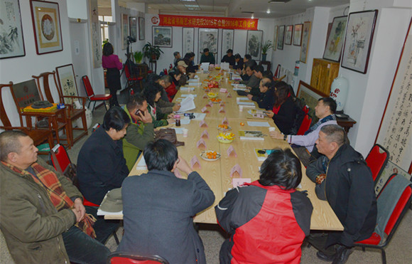 2016年1月16日上午,河北省书画艺术研究院年会在该院会议厅召开,院长赵岩峰做报告,对2015年的工作进行了认真全面的总结,并对新一年的工作进行了部署,会上还对部分理事、常务理事、副秘书长、副院长等院领导成员进行了调整。会议由副秘书长兼办公室副主任刘雪明主持,该院艺术顾问、副院长、副秘书长、常务理事、理事等56人参加了会议。