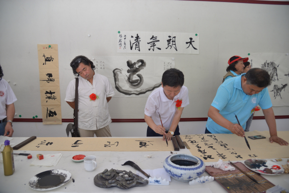 参加这次活动的有我院艺术顾问高月冬、王胜田,副院长黄宪律、颜默,副秘书长赵艳丽,办公主任陈素敏,常务理事彭聚学、张三、李文雁、王玉朝,理事郝二友、王辉、张惠茹、李洪亮、张文生,研究员聂江涛、潘兆霞、韩婉君、邱爱萍等100多位书画家、书画爱好者及媒体朋友,平山县委县政府、王母山景区的部分领导等出席活动。仪式之后还进行了精彩的武当功夫表演及大型笔会活动。此采风创作基地的成立为书画艺术家们提供了一个写生创作的好去处,必将带动平山县艺术繁荣和文化旅游升级!