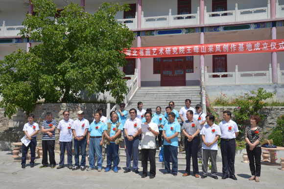 2016年6月25日上午,河北省书画艺术研究院王母山采风创作基地成立仪式在风景秀丽的道家文化圣地—平山县王母山旅游区隆重举行。揭牌仪式由河北省书画艺术研究院常务理事王玉朝主持,西柏坡管理局风景名胜管理处处长田林广,河北省书画艺术研究院院长赵岩峰,河北天台山旅游有限公司董事长李金奎先后发表讲话,河北省书画艺术研究院院长赵岩峰、河北天台山旅游有限公司董事长李金奎共同为基地揭牌。