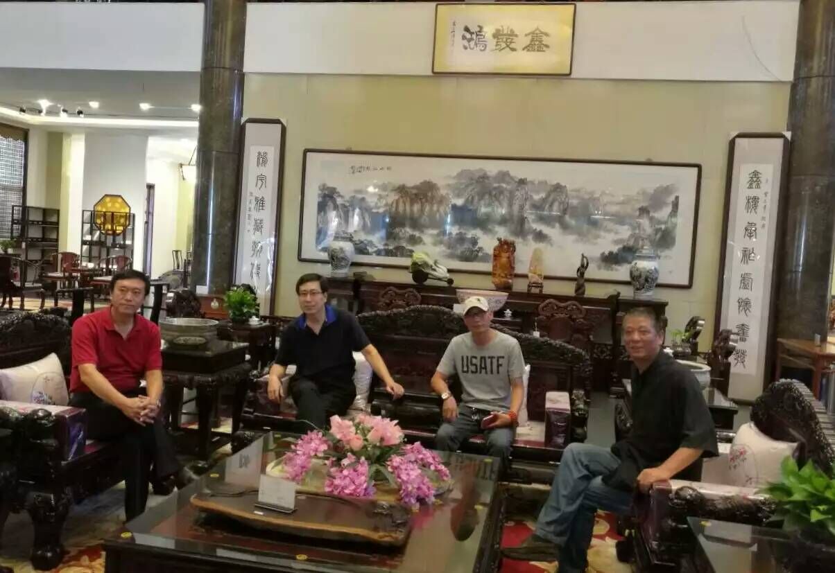 2016年9月8日,河北省书画艺术研究院院长赵岩峰、副秘书长王世成、常务理事张三、理事杨宝江、丁红亮等一起赴廊坊大城鑫发鸿红木家具基地举行了书画艺术交流笔会,此乃红木文化与书画艺术相结合,共同推进文企进步、交流、发展。