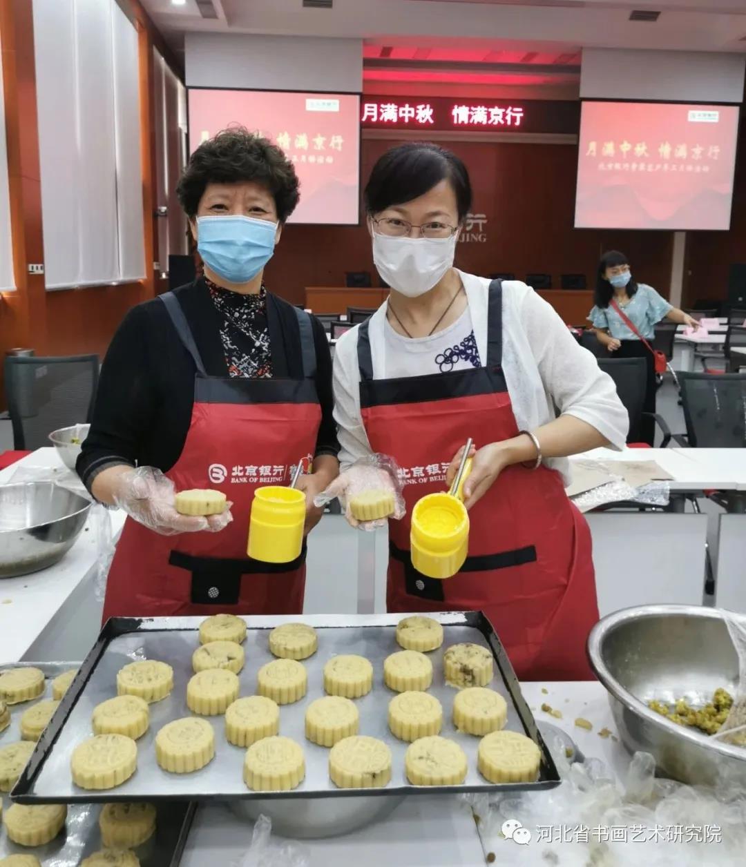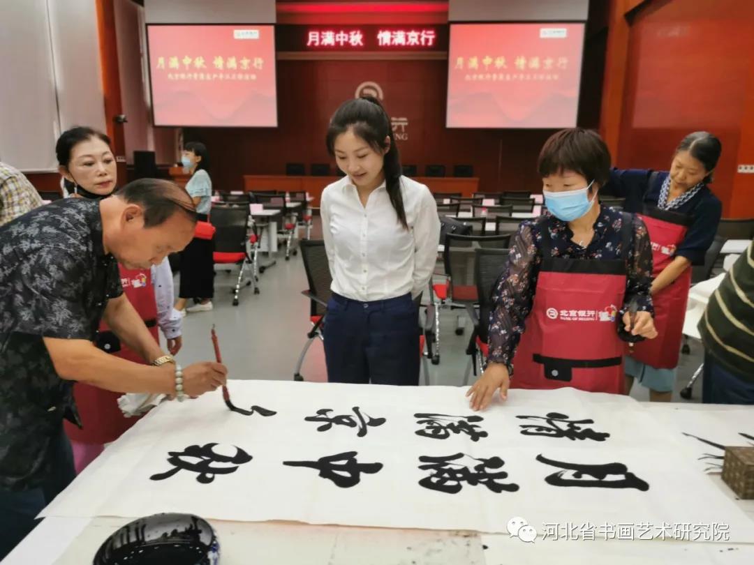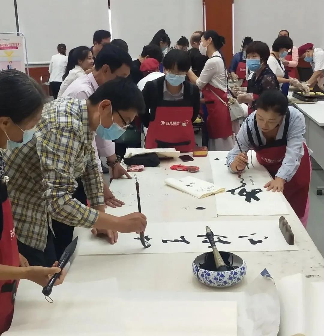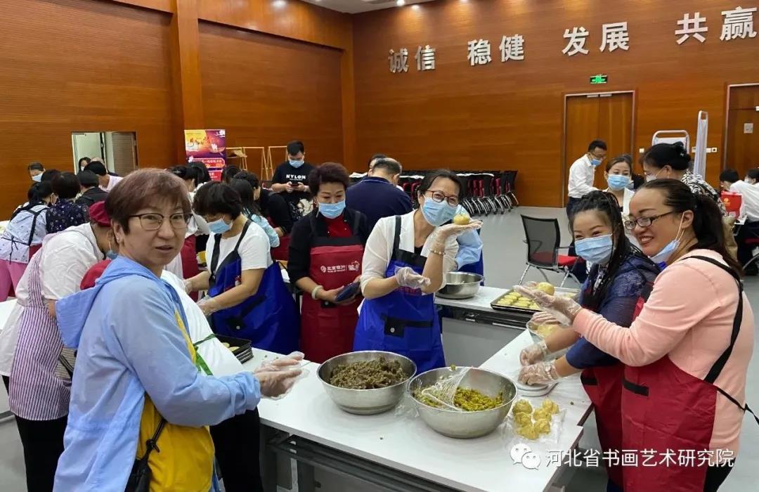 2021年9月5日上午,河北省书画艺术研究院的朋友们一行近50人走进北京银行石家庄分行,现场手工制作月饼迎接中秋佳节的到来。