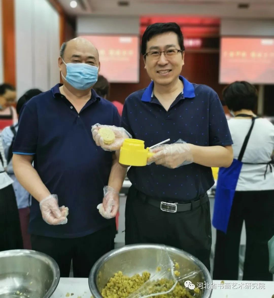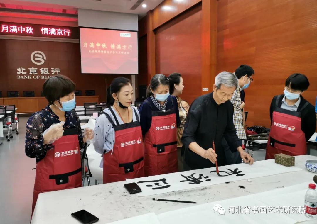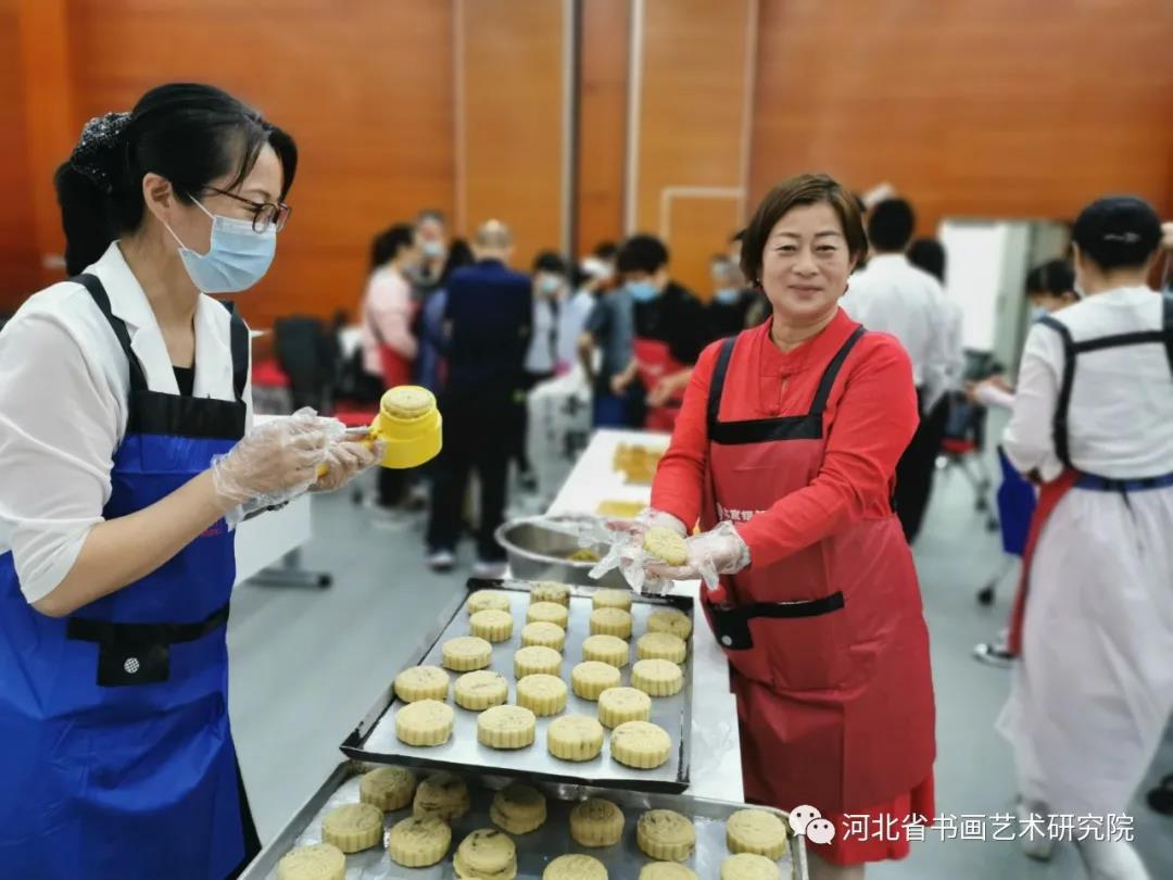 2021年9月5日上午,河北省书画艺术研究院的朋友们一行近50人走进北京银行石家庄分行,现场手工制作月饼迎接中秋佳节的到来。